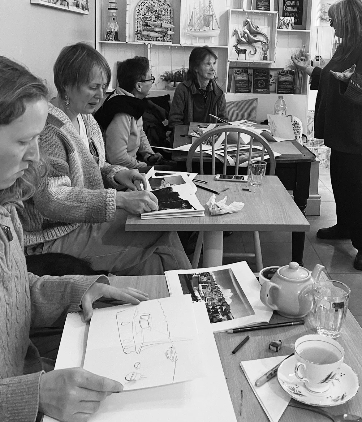 Drawn Together Workshops are based in the picturesque historic harbour village of Porthleven on the wild south west coast of Cornwall, UK. We offer contemporary art and drawing workshops in multiple locations around the village and surrounding areas. Our workshops offer fun, affordable, educational and creative workshops and courses for all abilities. Taught by professional artists, in a comfortable, inclusive and welcoming setting. Our aim is to help you tap into your creativity and find your own unique art voice. We help you develop your creative confidence, through exploration and process, with a hands on approach to art making and learning….
