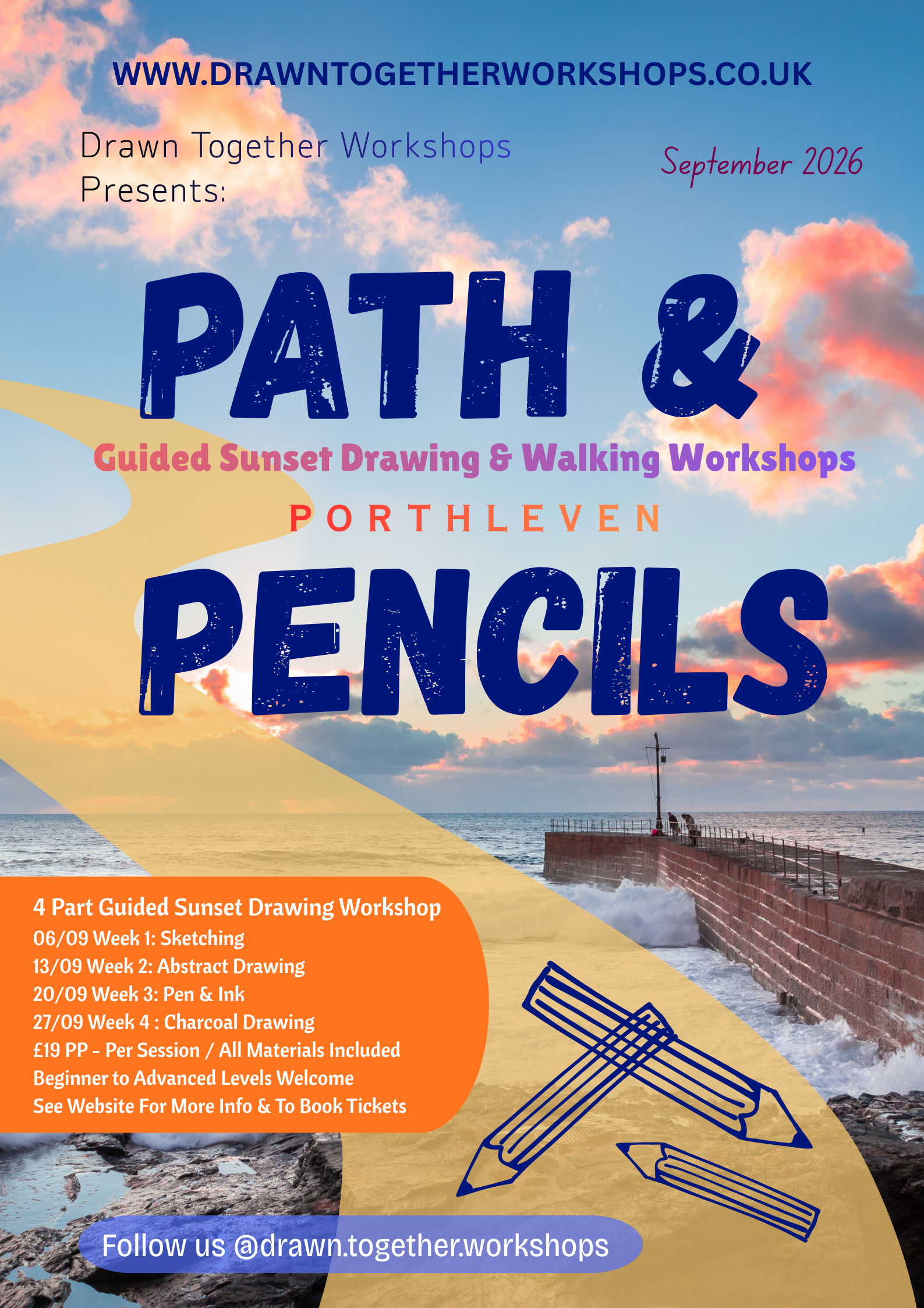 What better way to see the beautiful village of Porthleven than at sunset, this golden hour guided drawing workshop will bring a new perspective to this amazing location! This gentle walking and drawing workshop series will take you around the village, guided by professional local artist Emma Frances. Discover drawing on location, with all your materials included. Each week we will investigate a different medium and work in sketchbooks and on paper!